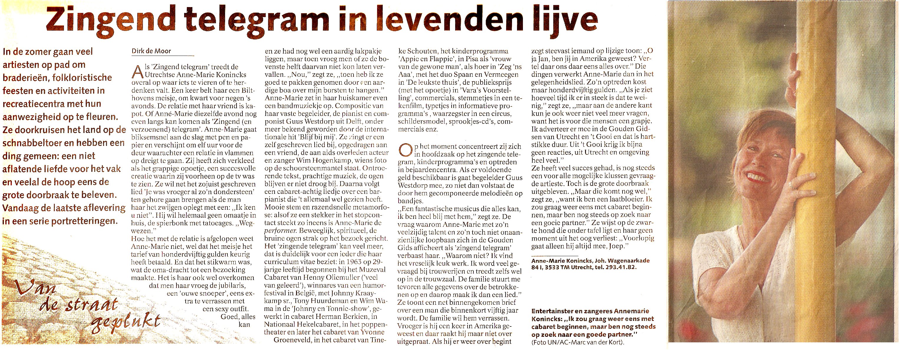 Zij schrijft en zingt voor u een persoonlijk lied, met daarin de gegevens verwerkt die voor u van belang zijn.